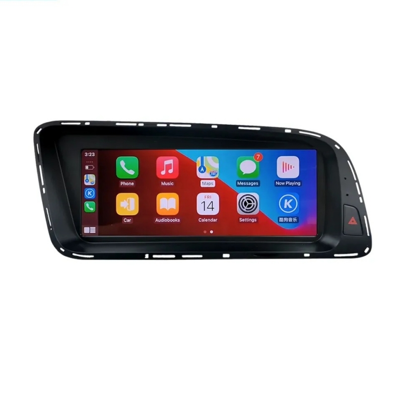 Audi Q5 car navigation system with 8 core 8.8 inch screen. It supports GPS navigation, 4K video playback, rear view camera, 360 panorama, carplay & android auto, build-in BT & WIFI, and 4G optional.